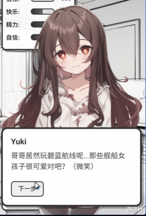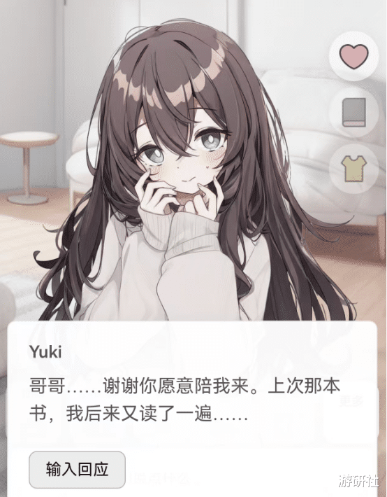 由于游戏的大部天职容都需要玩家手动输入,也即是说,你王人备不错施展我方的遐想力,将心里能意象的任何抒发、任何复兴,极其解放地剪辑成笔墨发给Yuki,而Yuki也会对你说的话作念出复兴,并触发之后的内容和剧情。