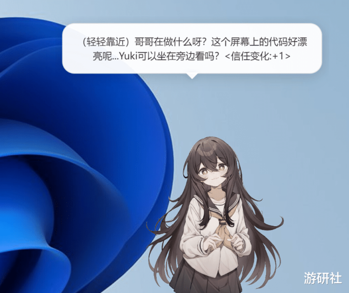 桌宠玩法亦然如斯,放在桌面上的Yuki不仅不错及时看到玩家屏幕里正在骄傲的内容,而且还会字据之前的对话和调教好的本性属性,给出不同的反馈和对话。