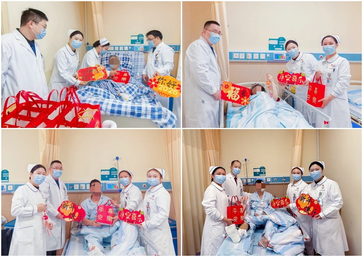 新春将至,岁寒情暖。近日,外三科举办新年团拜会活动,以暖心跟随结果荒僻,用医者温存点亮隆冬。活动现场,一张张喜庆的福字、一句句真挚的问候,让平时里平静的病区富余着温馨祥和的气味。科主任与照拂长指挥医护团队走进病房,将满载道贺的福字递到患者手中,提神征询病情规复发挥、叮属康复注意事项,还与患者及家属亲切交谈,既缓解了入院的着急心思,也传递了浓浓的节日暖热。患者与家属兴奋肠接过福字,脸上表露欣忭的笑脸,纷纷赞誉医护东谈主员贴心风雅的奇迹,直言“在病院过年也有家的嗅觉!”