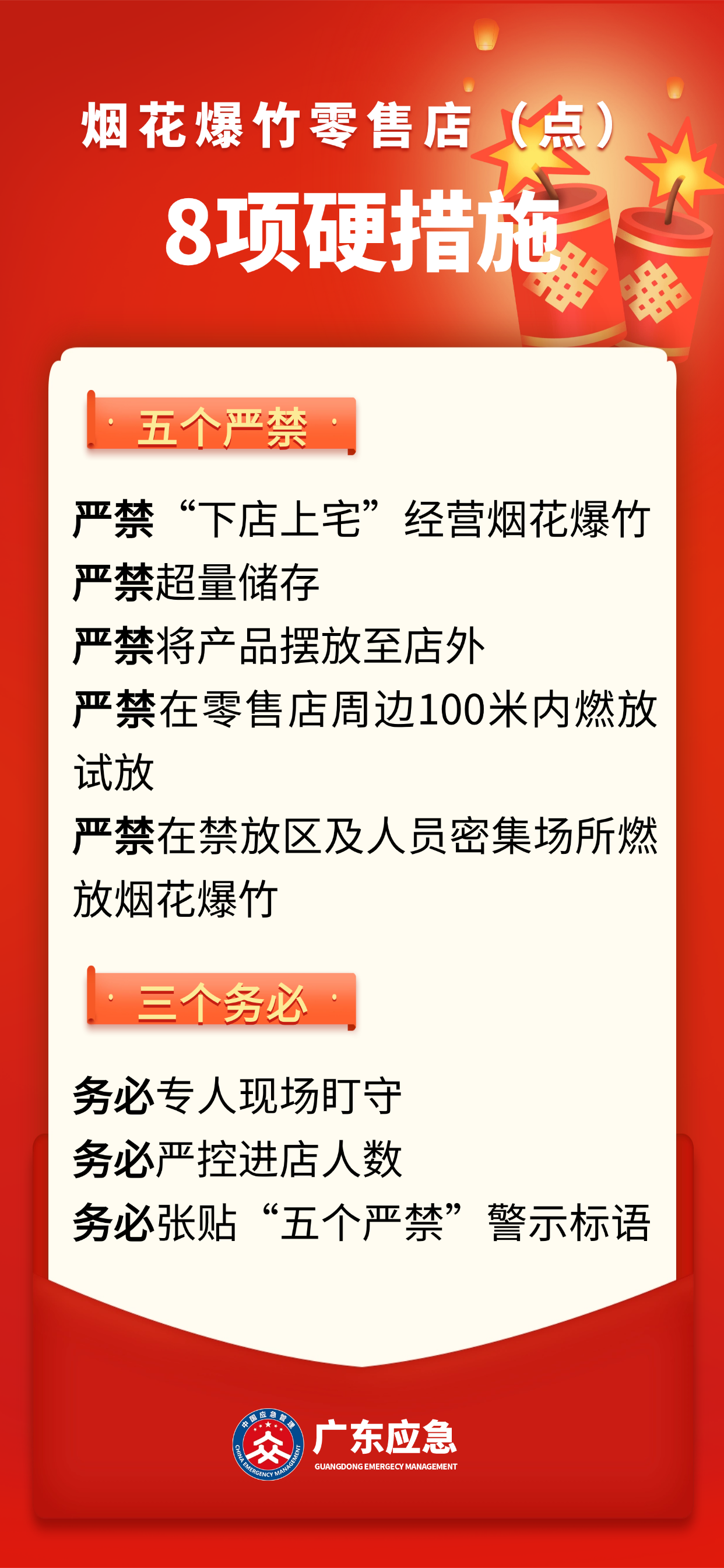 烟花炮竹零卖店(点)“五个严禁、三个务必”。 通信员 粤应宣 供图